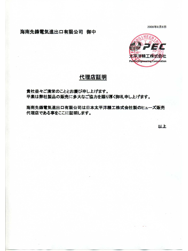 海南先鋒電氣進(jìn)出口有限公司成立于1999年,是經(jīng)海南省外經(jīng)貿(mào)廳批準(zhǔn),省工商局注冊(cè)的一家經(jīng)營(yíng)電氣零部件進(jìn)出口貿(mào)易的專(zhuān)業(yè)公司,總部位于我國(guó)南端充滿(mǎn)熱帶風(fēng)情的旅游城市—海南省??谑?,公司經(jīng)營(yíng)理念是:誠(chéng)信為本,服務(wù)至上。主營(yíng)業(yè)務(wù)是為國(guó)內(nèi)各類(lèi)線(xiàn)束工廠(chǎng)和汽車(chē)廠(chǎng)商引進(jìn)國(guó)外優(yōu)質(zhì)的電氣配件,公司經(jīng)過(guò)多年與用戶(hù)的精誠(chéng)合作,在國(guó)內(nèi)汽車(chē)行業(yè)和電子行業(yè)擁有良好的商業(yè)信譽(yù)。